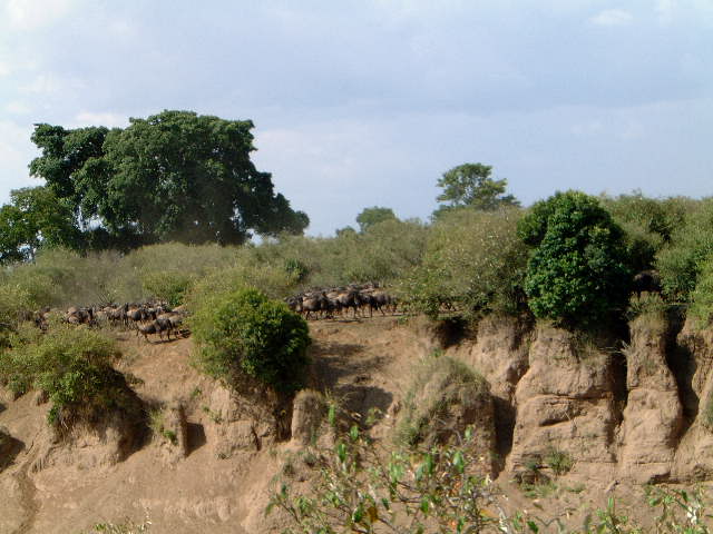 4)対岸へたどり着いた集団最後のヌーたち。開始から20分くらいでしょうか。