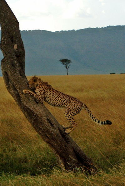 若い兄弟チーターにも出会いました。彼らは機嫌が良かったのでしょうか、それともいつものことなのか解りませんが木に登って見せたり、糞をしたりと私たち観光客にとてもサービスをしてくれました。